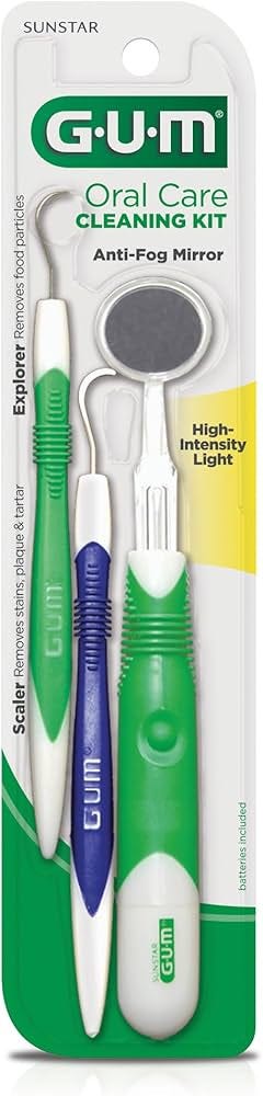I got mine — made of surgical stainless steel — from a set of used dental tools at a garage sale for 25 cents. It’s incredibly handy for inspecting missing fillings, infections, gum complaints, particularly in kids. And you can look for sharp edges on dental braces. There really is no other way to look deep inside the mouth. The key is to get a proper front-surface mirror, which some drugstore plastic versions don’t have. Otherwise at close range there is a slight double image which confuses the image. — KK
