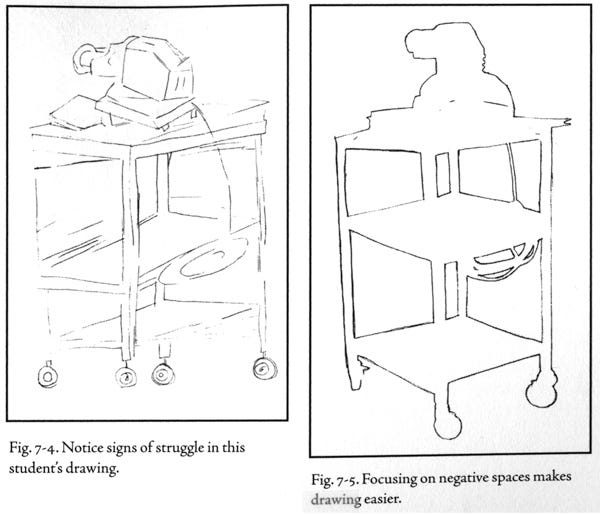 A caution: as all of our students discover, sooner or later, the left hemisphere is the Great Saboteur of endeavors in art. When you draw, it will be set aside--left out of the game. Therefore, it will find endless reasons for you not to draw: you need to go to the market, balance your checkbook, phone your mother, plan your vacation, or do that work you brought home from the office.