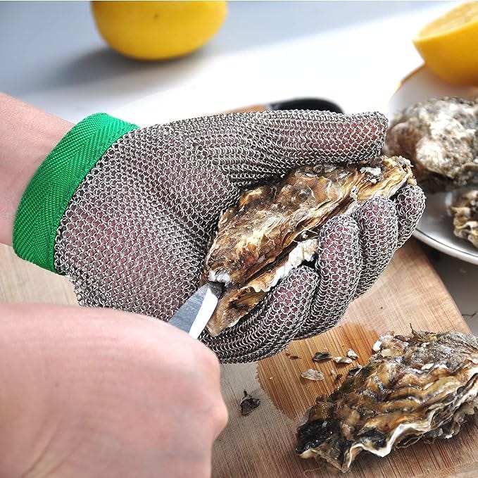 These Spectra/Kevlar gloves are used in the restaurant industry to defend against knife and mandolin cuts, as well as handling trash that may have protruding bits of glass and fish bones. I read about them in a cooking magazine, and bought one glove after cutting myself on a mandolin.