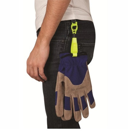 The clips have a “breakaway” feature, so that you won’t be trapped if your gloves get caught in machinery or something. This caused me some worry when my gloves got caught in the truck door and seemed to break away too easily but the two pieces of the clip reconnected with ease, and have continued to hold firm ever since.