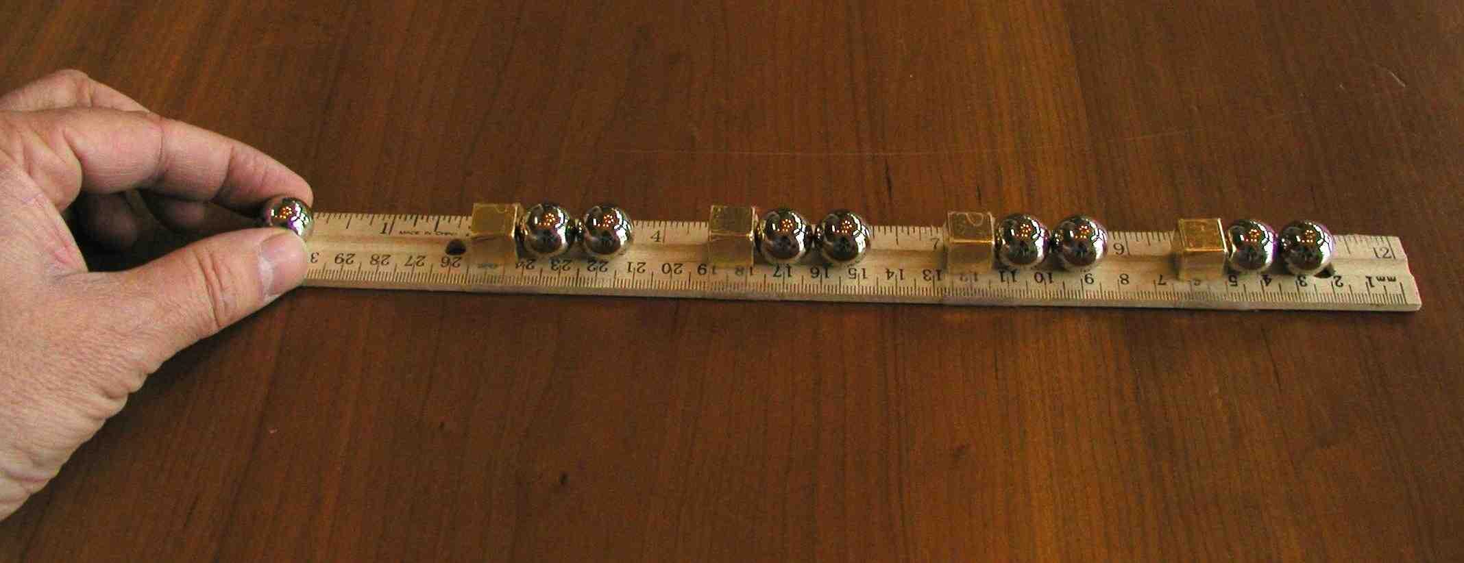 This very simple toy uses a magnetic chain reaction to launch a steel marble at a target at high speed. The toy is very simple to build, going together in minutes, and is very simple to understand and explain, and yet fascinating to watch and to use.
