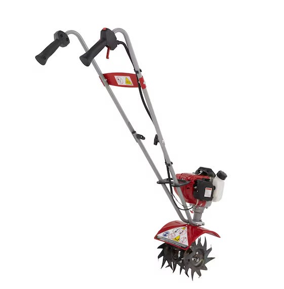 The Mantis is a little jewel. They are exceptionally easy to work with, being easy to start and incredibly lightweight. I have two caveats though: 1) To use it most effectively, you have to put it in front of you and then walk backwards, dragging the machine with you while simultaneously trying to keep on eye on the machine and where you’re about to step. 2) Tough plants have a tendency to get tangled up in the tines. Fortunately, the tines can be removed, cleaned of offending material, and replaced very quickly.