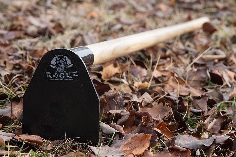Rogue Hoes are all about $30 and come in a myriad of sizes and blade shapes. I use the 65g for general soil-mixing-and-moving and weed slicing and the 60S “stealth bomber” to remove weeds from tight spots. The blade takes a very keen edge with a little filing and the handles should last a very long time with occasional oiling and the most basic of care: keep them out of the rain and hang them with the blade and handle off the ground. — Rob Campbell